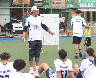 Oferecemos treinamentos especializados para aprimorar habilidades técnicas e táticas, preparando nossos atletas para desafios maiores no futebol e incentivando a paixão pelo esporte em cada um deles.